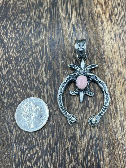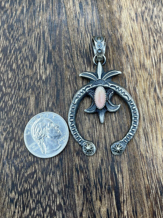 Native American Indian Navajo Handmade Silver Old Look Pink Concho Naja Pendant