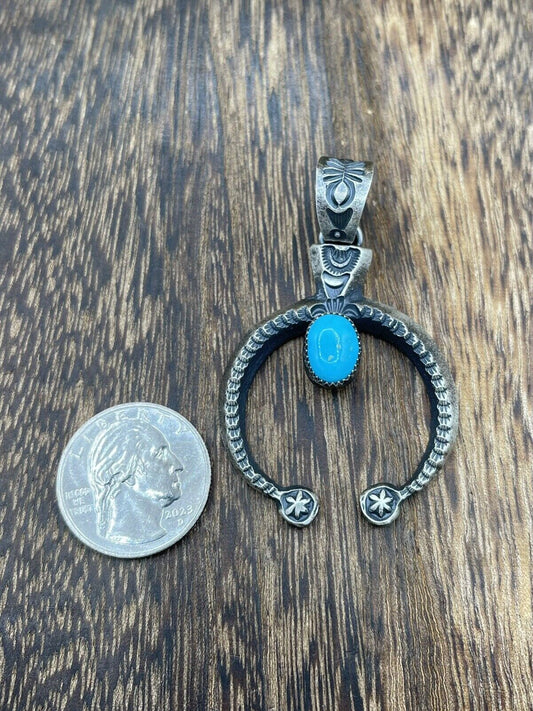 Native American Indian Navajo Handmade Silver Old Look Turquoise Naja Pendant