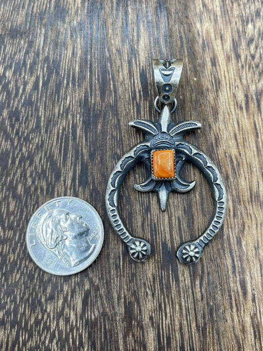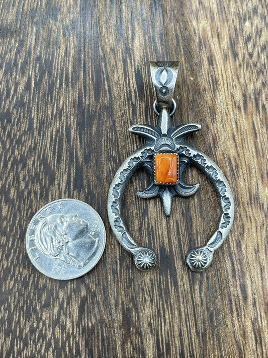 Native American Indian Navajo Handmade Silver Old Look Spiny Oyster Naja Pendant