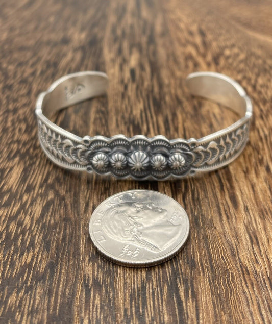 Navajo Handmade Sterling Silver Old Look Concho Design Stacker Cuff Bracelet