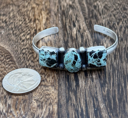 Navajo Handmade Sterling Silver Blue Ridge Turquoise Cluster Cuff Bracelet
