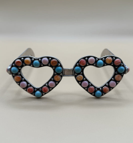 First Ever Navajo Handmade Sterling Silver Multi Stone Glasses By Tricia Smith
