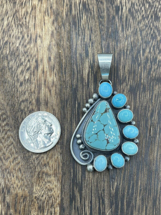 Native American Navajo Silver Handmade Turquoise Cluster Pendant - Betta Lee