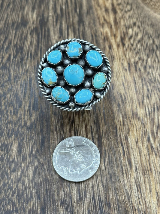 Navajo Handmade Sterling Silver Kingman Turquoise Adjustable Ring Size 7 To 9