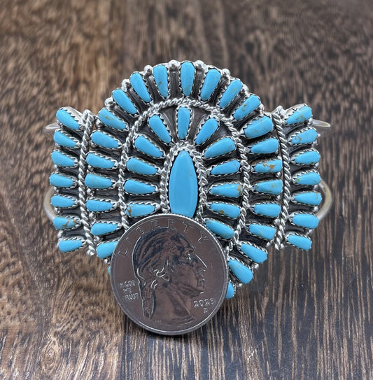 Native American Navajo Handmade Sterling Silver Turquoise Cluster Cuff Bracelet