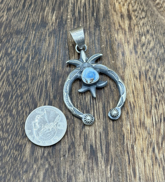 Navajo Handmade Sterling Silver Old Look Golden Hills Turquoise Naja Pendant