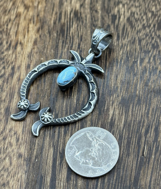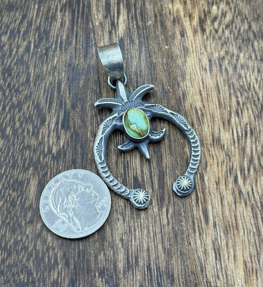 Navajo Handmade Sterling Silver Golden Hills Turquoise Naja Pendant Kevin Billah