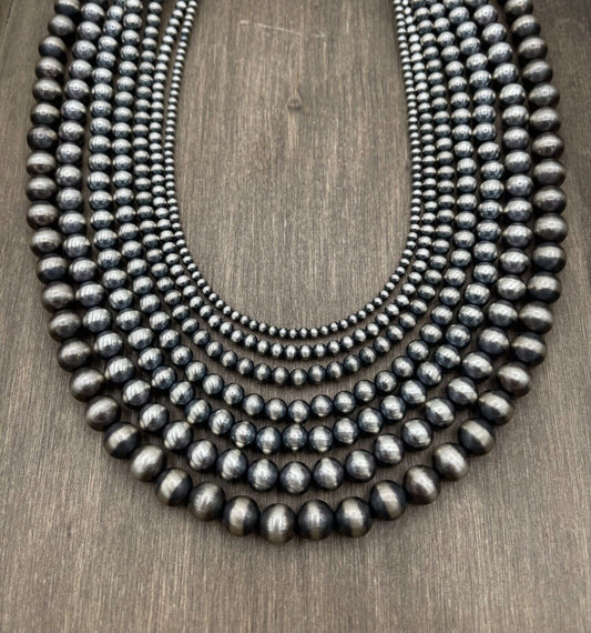Sterling Silver Pearl Bead Necklaces 3mm 4mm 5mm 6mm 7mm 8mm 10mm 3-6mm 4-8mm