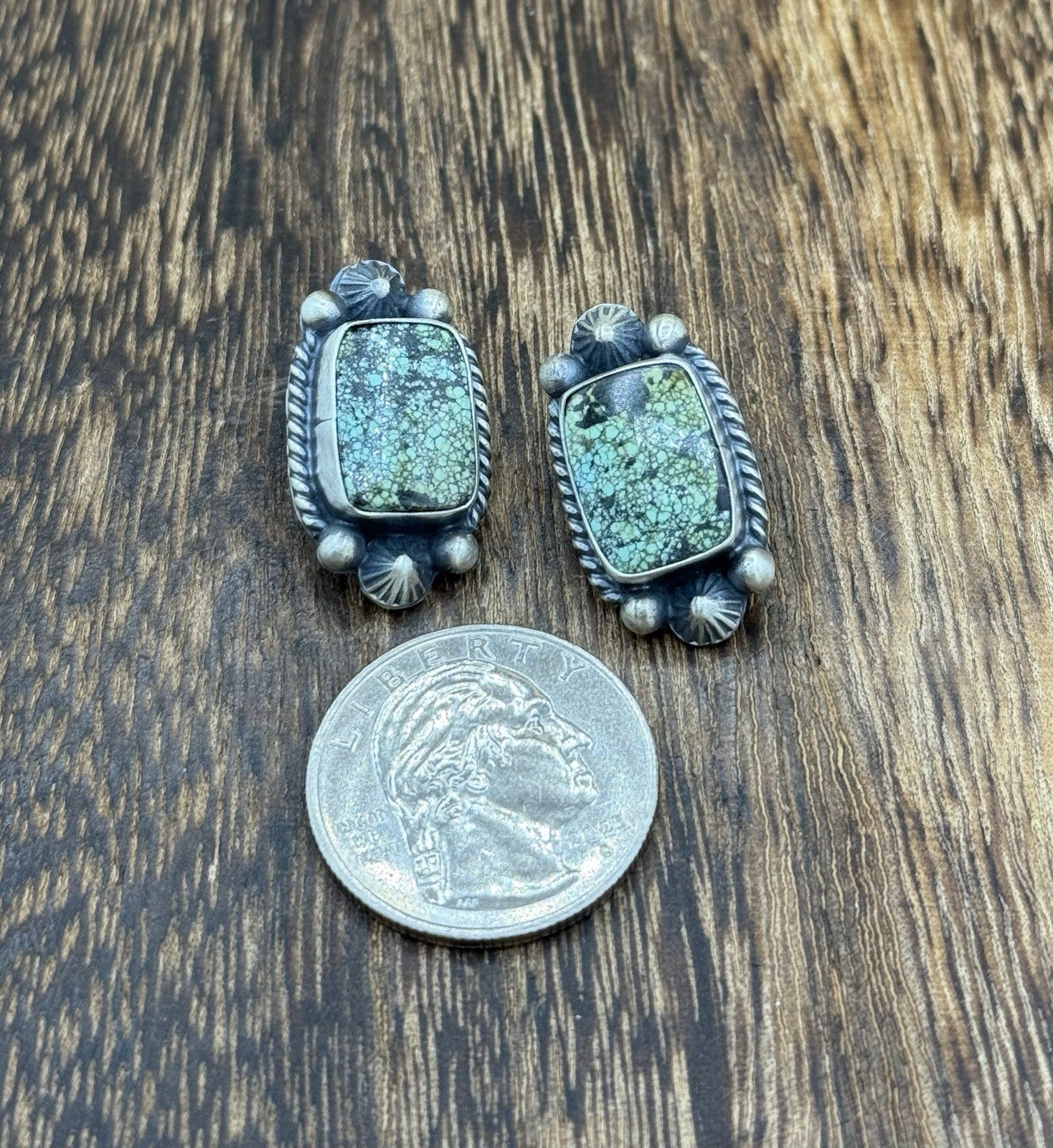 Navajo Handmade Sterling Silver Blackjack Turquoise Old Look Post Stud Earrings