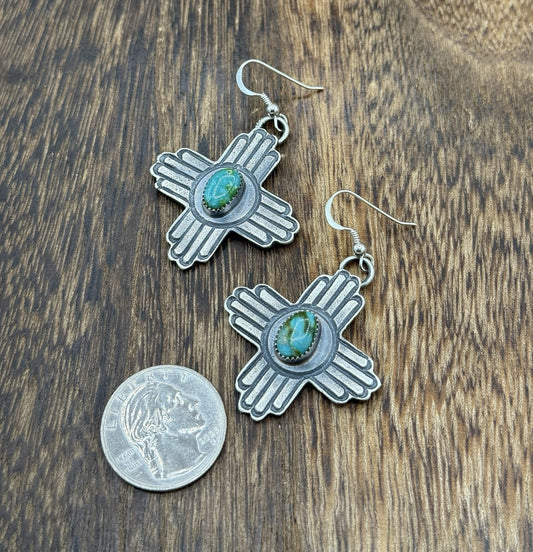 Navajo Handmade Sterling Silver Zia Kingman Turquoise Earrings Kevin Billah