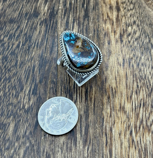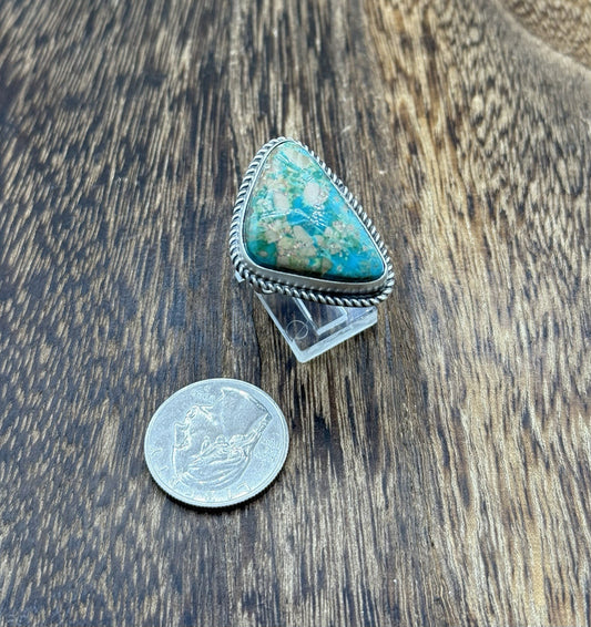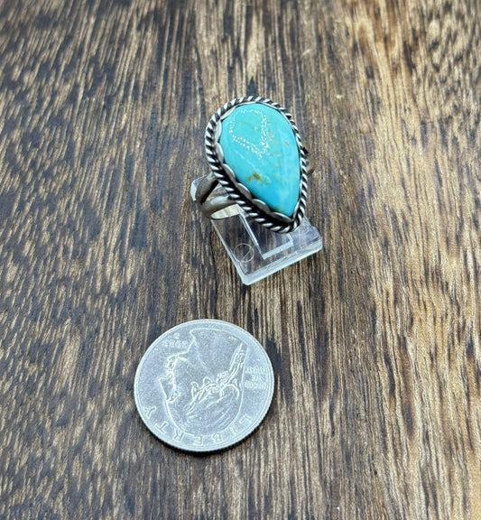 Native American Navajo Handmade Sterling Silver Royston Turquoise Ring Size 9