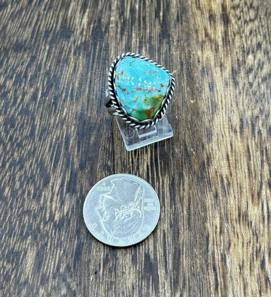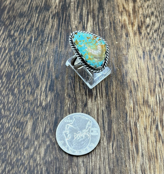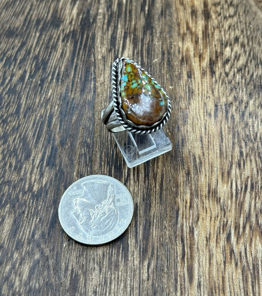 Native American Navajo Handmade Sterling Silver Royston Turquoise Ring Size 8