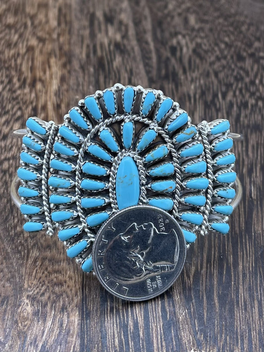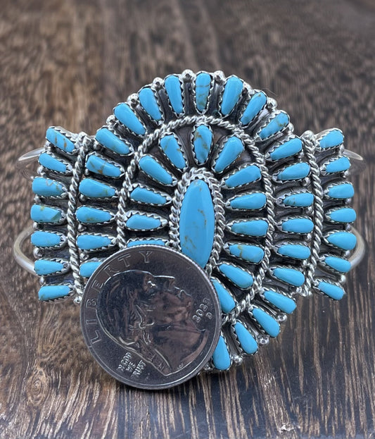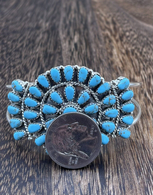 Native American Navajo Handmade Sterling Silver Turquoise Cluster Cuff Bracelet