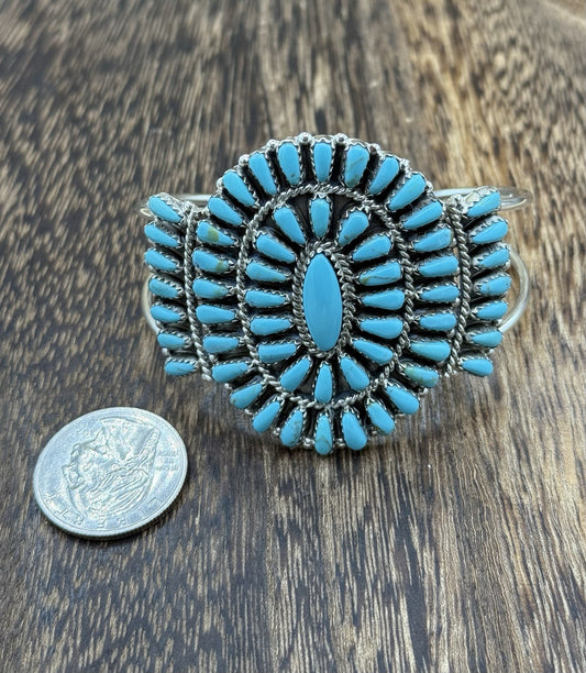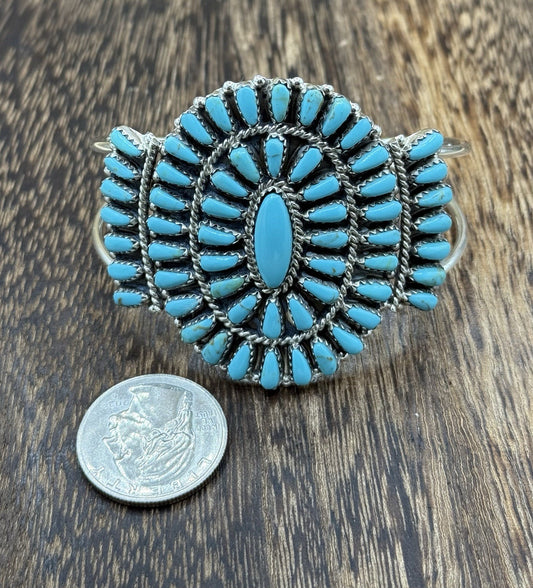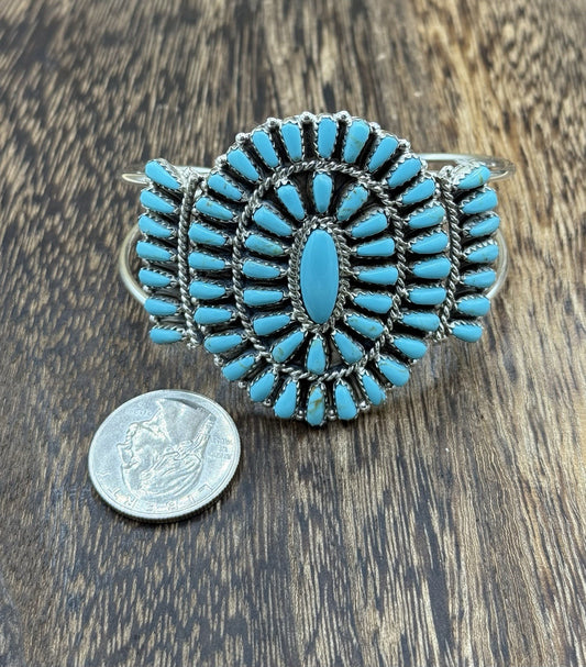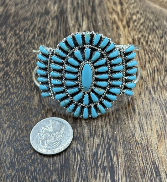 Native American Navajo Handmade Sterling Silver Turquoise Cluster Cuff Bracelet