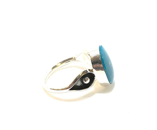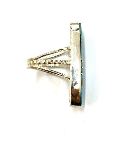 Native American Sterling Silver Navajo Handmade Inlay Turquoise Ring Size 6.5