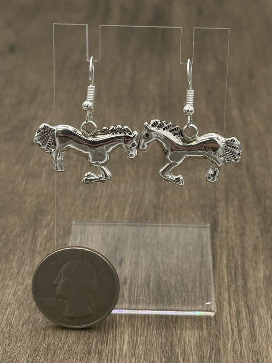 Native American Sterling Silver Navajo Handmade Dangle Horse Earrings