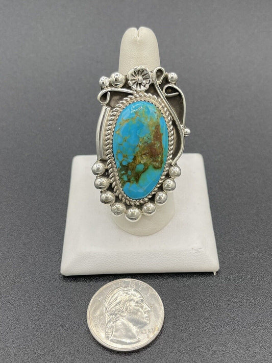 Native American Sterling Navajo Handmade Royston Turquoise Ring Size 10