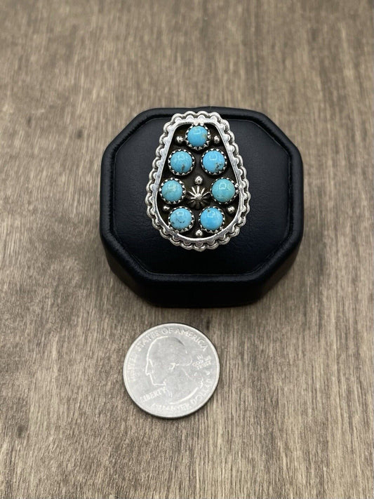 Native American Sterling Silver Navajo Handmade Natural Turquoise Ring Size 6.5