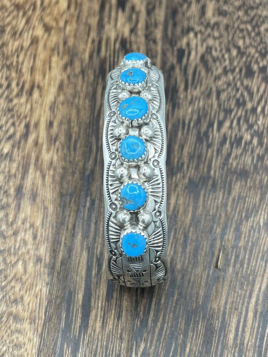 Native American Sterling Silver Navajo Handmade Kingman Turquoise Cuff Bracelet