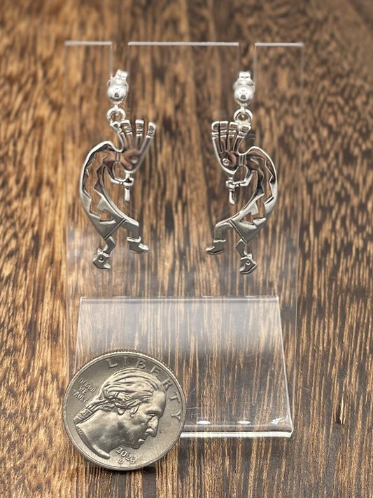 Native American Sterling Silver Navajo Handmade Kokopelli Dangle Earrings