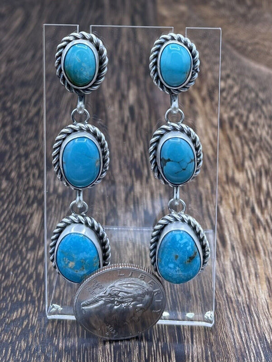 Native American Sterling Silver Navajo Handmade Turquoise Post Dangle Earrings