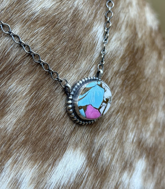 Native Navajo Handmade Sterling Silver Cotton Candy Dahlia Bar Necklace 18”