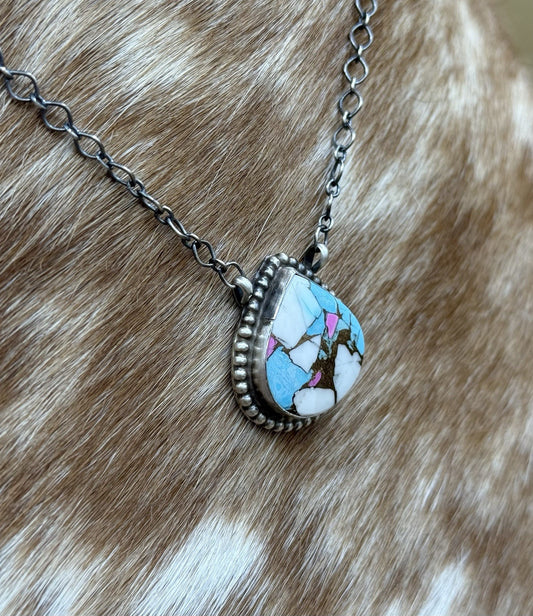 Native Navajo Handmade Sterling Silver Cotton Candy Dahlia Drop Pendant