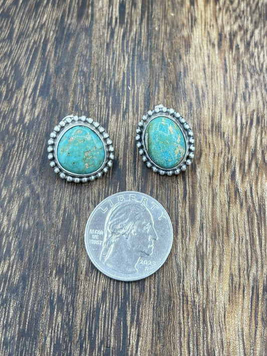 Native American Navajo Handmade Silver Sonoran Turquoise Post Stud Earrings