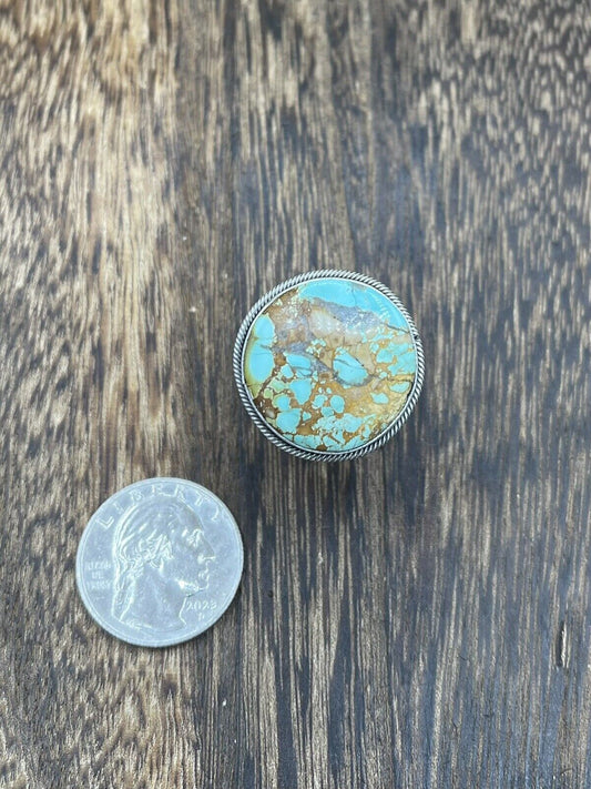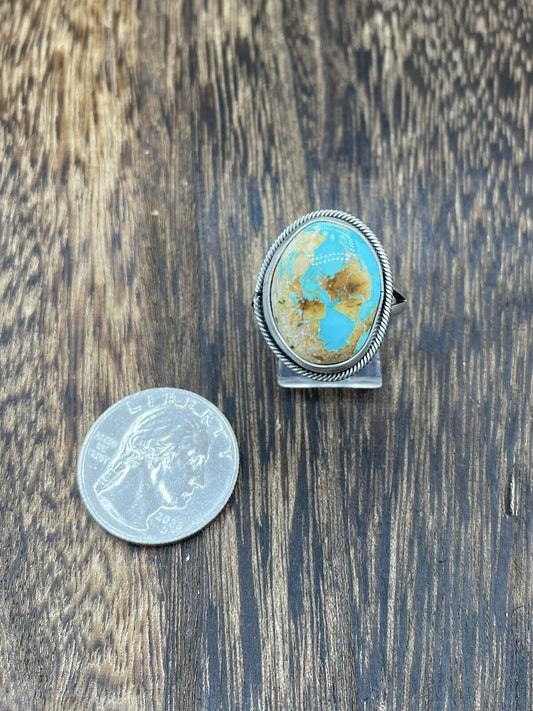 Native American Navajo Handmade Silver Royston Turquoise Old Look Ring Size 10