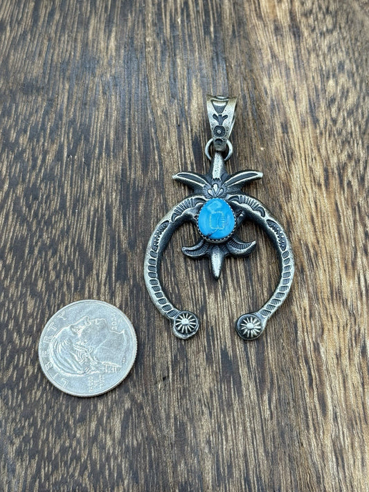 Native American Navajo Handmade Silver Old Look Kingman Turquoise Naja Pendant