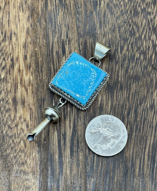 Native Navajo Handmade Sterling Silver Kingman Turquoise Dangle Blossom Pendant