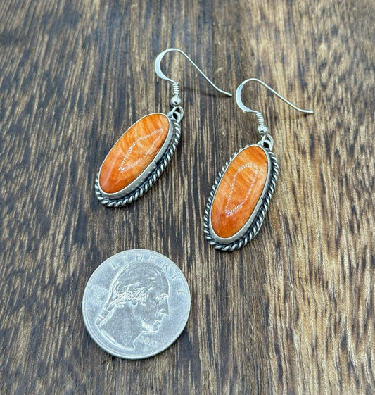 Native Navajo Handmade Sterling Silver Orange Spiny Oyster Shell Dangle Earrings