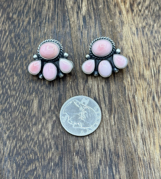 Native Navajo Handmade Sterling Silver Pink Conch Shell Cluster Earrings