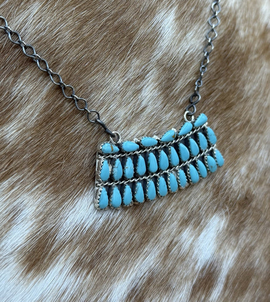 Native Navajo Handmade Sterling Silver Turquoise Cluster Bar Necklace 18”