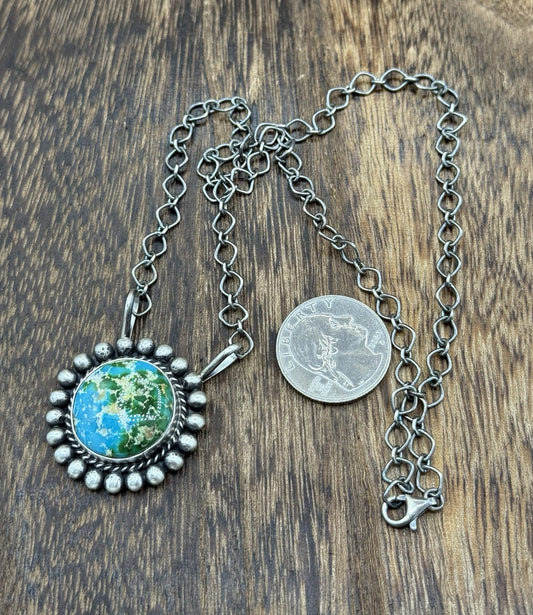 Native Navajo Handmade Sterling Silver Sonoran Gold Turquoise Necklace 18” Large