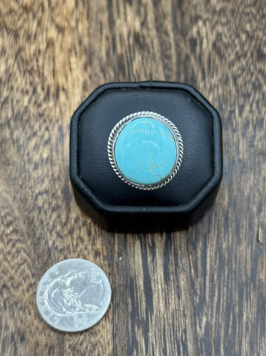Navajo Handmade Sterling Silver Blue Glacier Turquoise Adjustable Ring Sz 7 - 10Regular price $100.00 USDRegular priceUnit price / per-