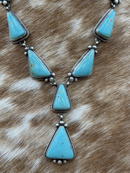 Navajo Handmade Sterling Silver Blue Glacier Turquoise Lariat Necklace Set 20”Regular price $950.00 USDRegular priceUnit price / per-