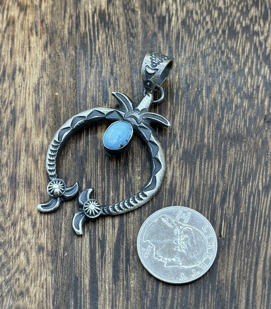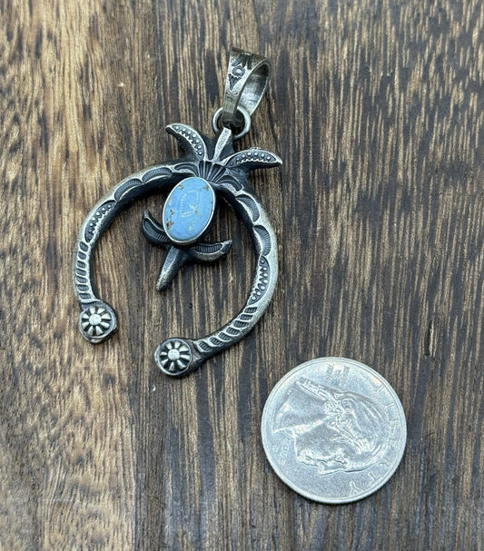 Navajo Handmade Sterling Silver Golden Hills Turquoise Naja Pendant Kevin BillahRegular price $115.00 USDRegular priceUnit price / per