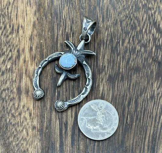 Navajo Handmade Sterling Silver Golden Hills Turquoise Dangle Blossom PendantRegular price $175.00 USDRegular priceUnit price / per-