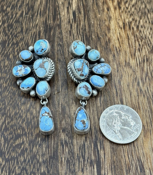 Navajo Handmade Sterling Silver Golden Hills Turquoise Half Cluster EarringsRegular price $375.00 USDRegular priceUnit price / per-