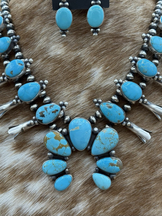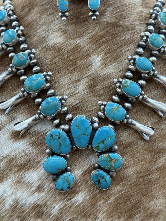 Navajo Handmade Sterling Silver Kingman Turquoise Squash Blossom Necklace 20”Regular price $1,750.00 USDRegular priceUnit price / per-
