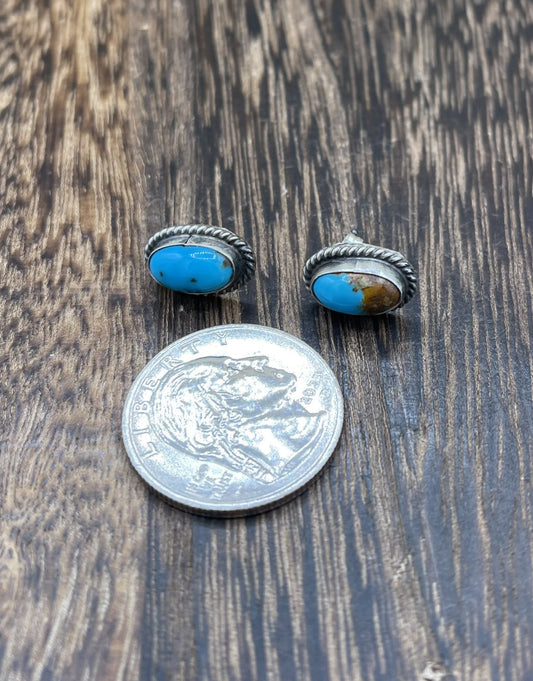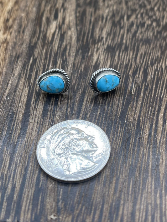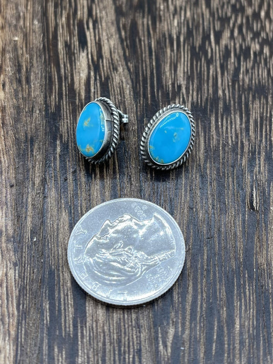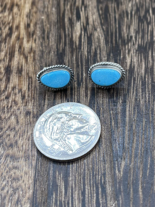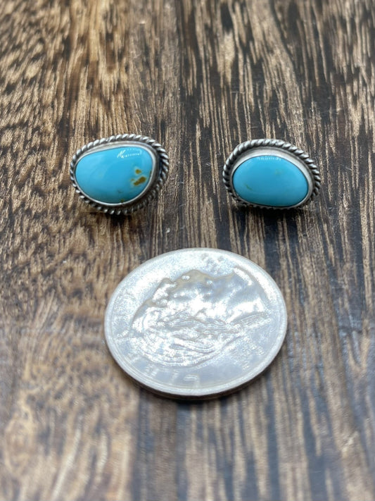 Navajo Handmade Sterling Silver Kingman Turquoise Post Stud Earrings Byron BegayRegular price $60.00 USDRegular priceUnit price / per-