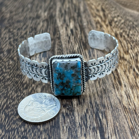 Navajo Handmade Sterling Silver Morenci Turquoise Stacker Cuff BraceletRegular price $200.00 USDRegular priceUnit price / per-