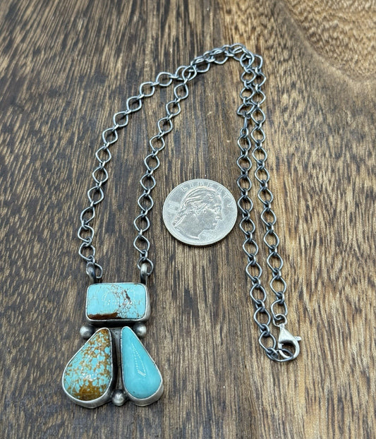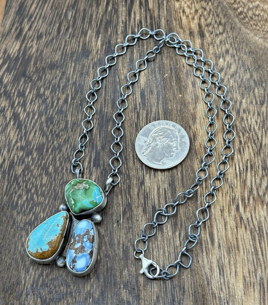 Navajo Handmade Sterling Silver Mixed Turquoise Cluster Bar Necklace 18”Regular price $225.00 USDRegular priceUnit price / per-
