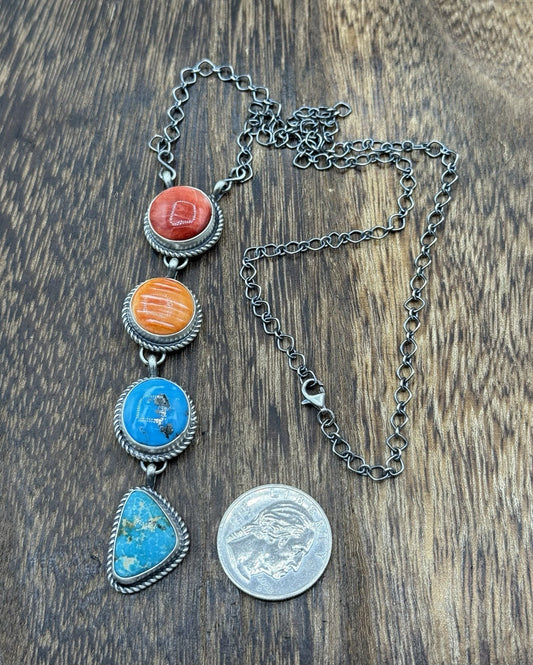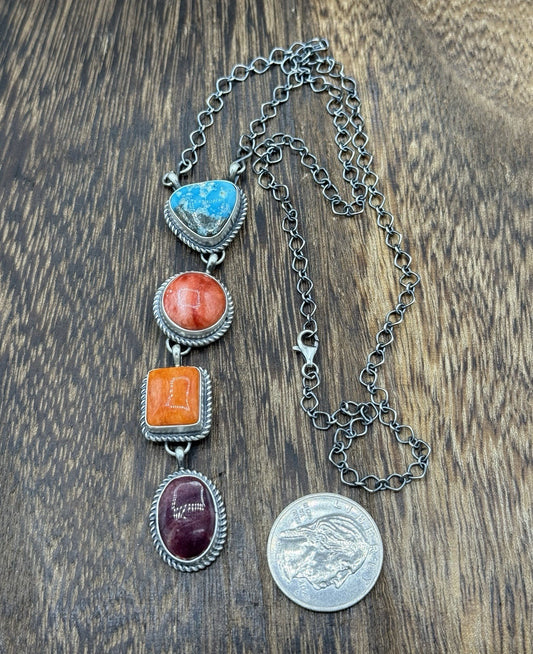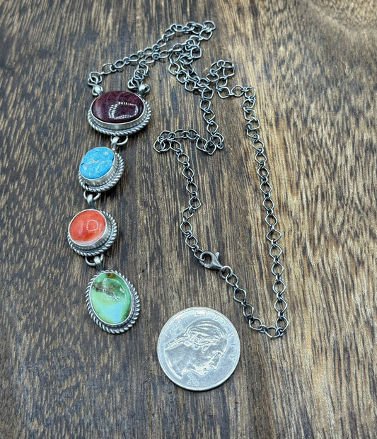 Navajo Handmade Sterling Silver Multi Color Mixed Stone Lariat Necklace 18”Regular price $275.00 USDRegular priceUnit price / per
