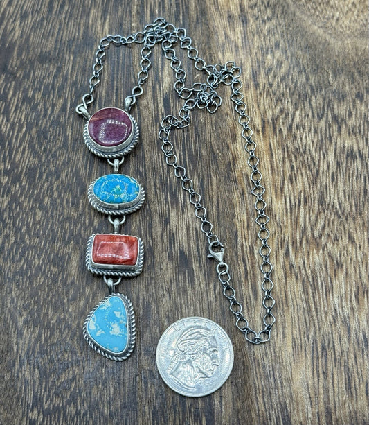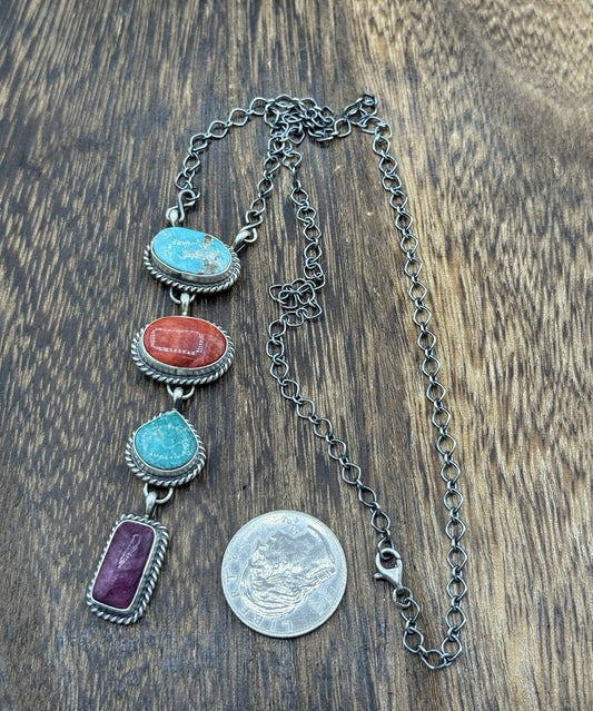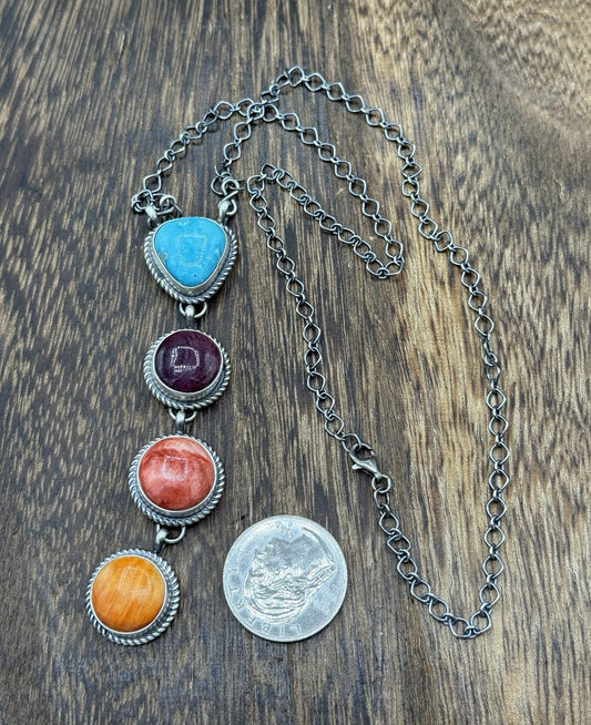 Navajo Handmade Sterling Silver Multi Color Mixed Stone Lariat Necklace 18”Regular price $275.00 USDRegular priceUnit price / per