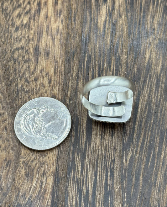 Navajo Handmade Sterling Silver Orange Spiny Oyster Adjustable Ring Size 7 - 10