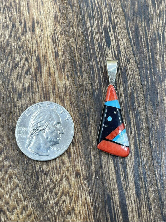 Native American Navajo Handmade Sterling Silver Multi Stone Inlay Pendant