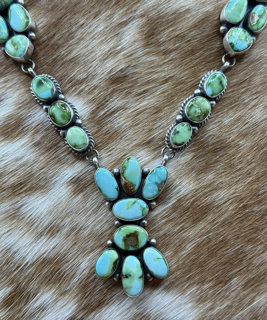 Navajo Handmade Sterling Silver Sonoran Gold Turquoise Cluster Lariat Necklace