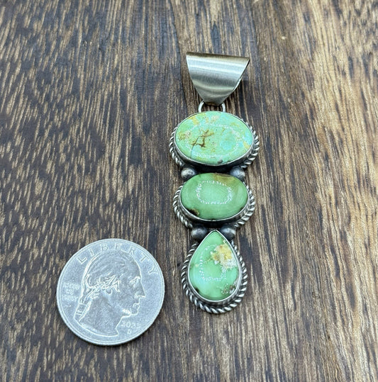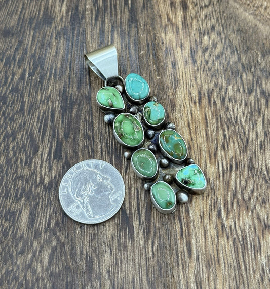 Navajo Handmade Sterling Silver Sonoran Gold Turquoise Cluster Drop Pendant